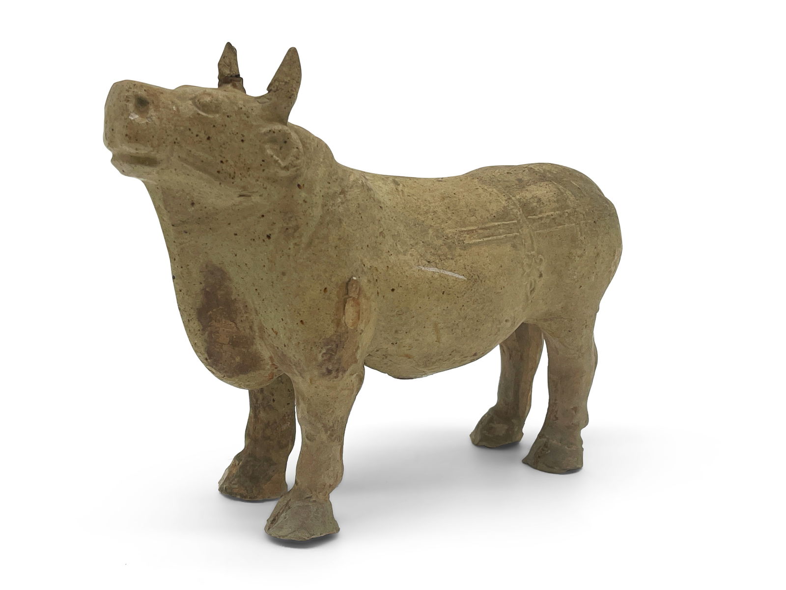 Primitive Earthenware Bull Figurine