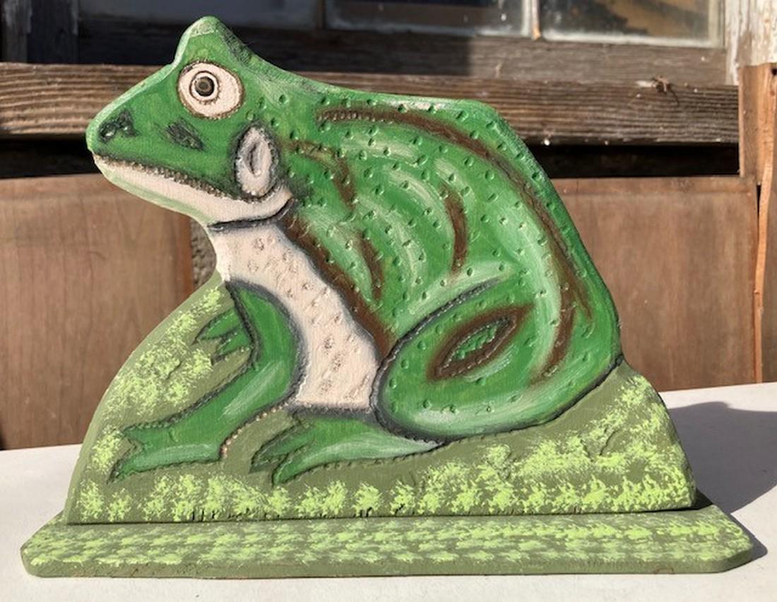 PRIMITIVE FOLK ART FROG SIGNED MENNO SHIRK