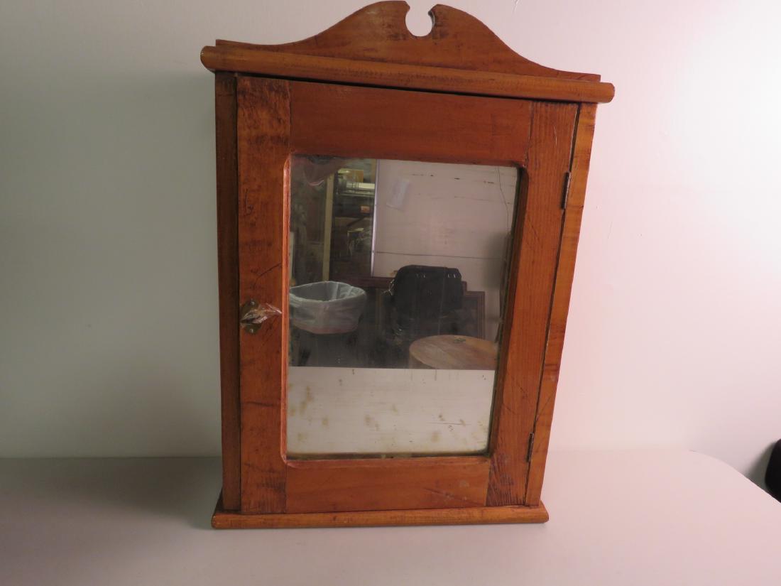 PRIMITIVE MIRRORED HANGING MAPLE WOOD CABINET