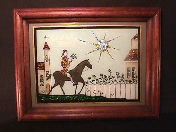 PRIMITIVE STYLE REVERSE PAINTING HORSE