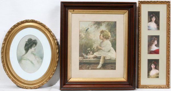 PRINTS IN GILT WOOD PICTURE FRAMES, 3