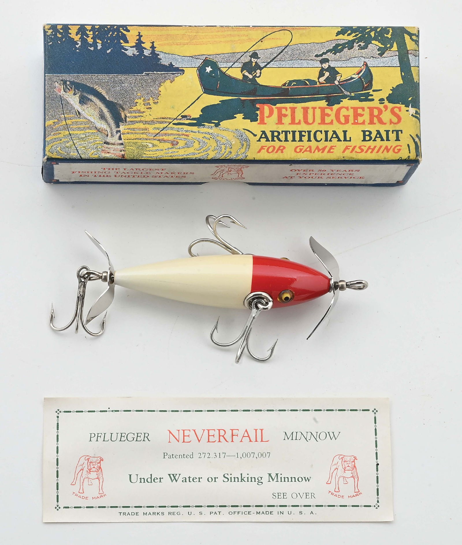 PRISTINE PFLUEGER NEVERFAIL MINNOW IN BLUE BORDER BOX