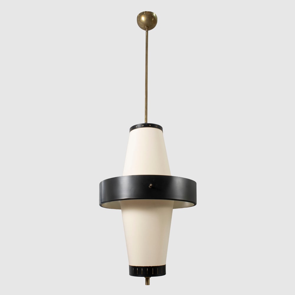 SoldProd. Stilnovo, a pendant lamp, Italy, 1950sStructure in lacquered metal, brass and plexiglass. 22x105cm.See Sold Price