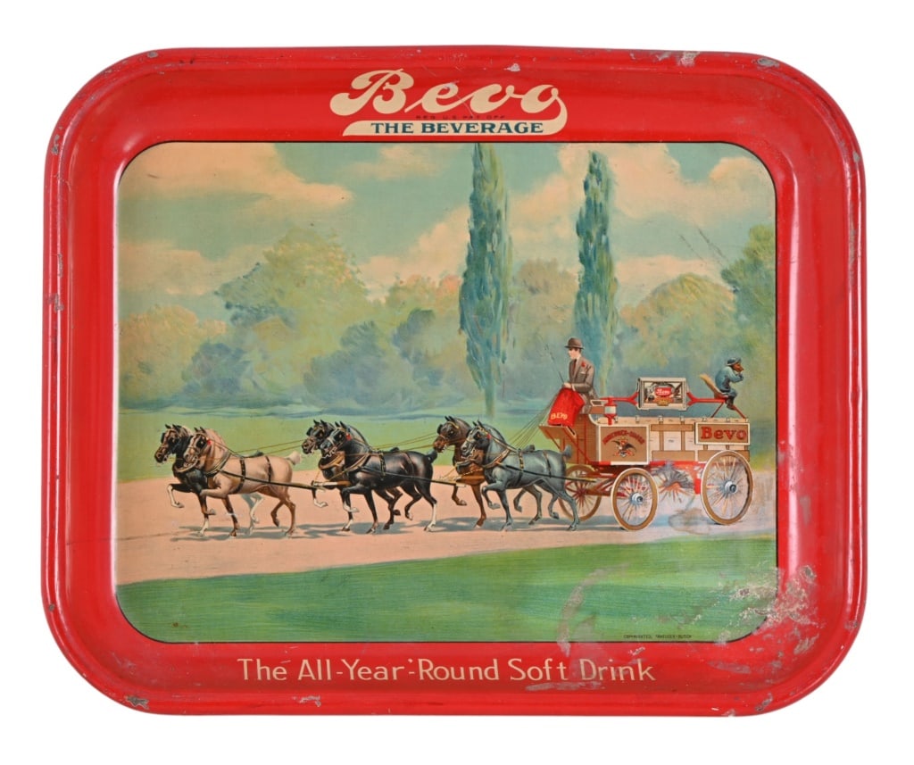 Buffalo Brewing Pre-Prohibition Serving Tray PHAROAHS HORSESMar 15, 2026City Brewing Preferred Stock Pre-Pro Tray HORSE GIRL OLD KENTUCKY TOLEDO OHMar 15, 2026Yosemite Beer Pre-Prohibition Serving Tray GIRL AND HORSEMar 15, 2026Pickwick Ale 1930s Serving Tray HORSES WAGON EXCELLENTMar 15, 2026Anheuser-Busch Pre-Prohibition Tray BOOZY CHERUBSMar 15, 2026Pabst Blue Ribbon 1930s Serving TrayMar 15, 2026Budweiser In Bottles 1930s Tin Easel Sign SHARPMar 15, 2026Standard Brewing Pre-Prohibition Tray SIOUX MEEK AND BEACH VAR MANKATO MNMar 15, 2026Beer Trays incl. Beck's and Old MilwaukeeFeb 26, 2026PAIR OF SACRAMENTO, CALIFORNIA BEER TIP TRAYS219 Lots AwayBudweiser Lager Beer 10 OUNCE Flat Top DNCMT 4 PERCENT LID 44-9Mar 15, 2026Rochester Brewing Pre-Prohibition Serving Tray SCARCEMar 15, 2026Carta Blanca 1930s Mexican Serving Tray SHARPMar 15, 2026Vintage 1940’s Pepsi Cola “Hits The Spot” Serving TrayMar 07, 2026Robb Nicholls & Co., Saskatchewan Serving TrayCountry Club Beer 1940s Serving Tray PONY EXPRESSMar 15, 2026