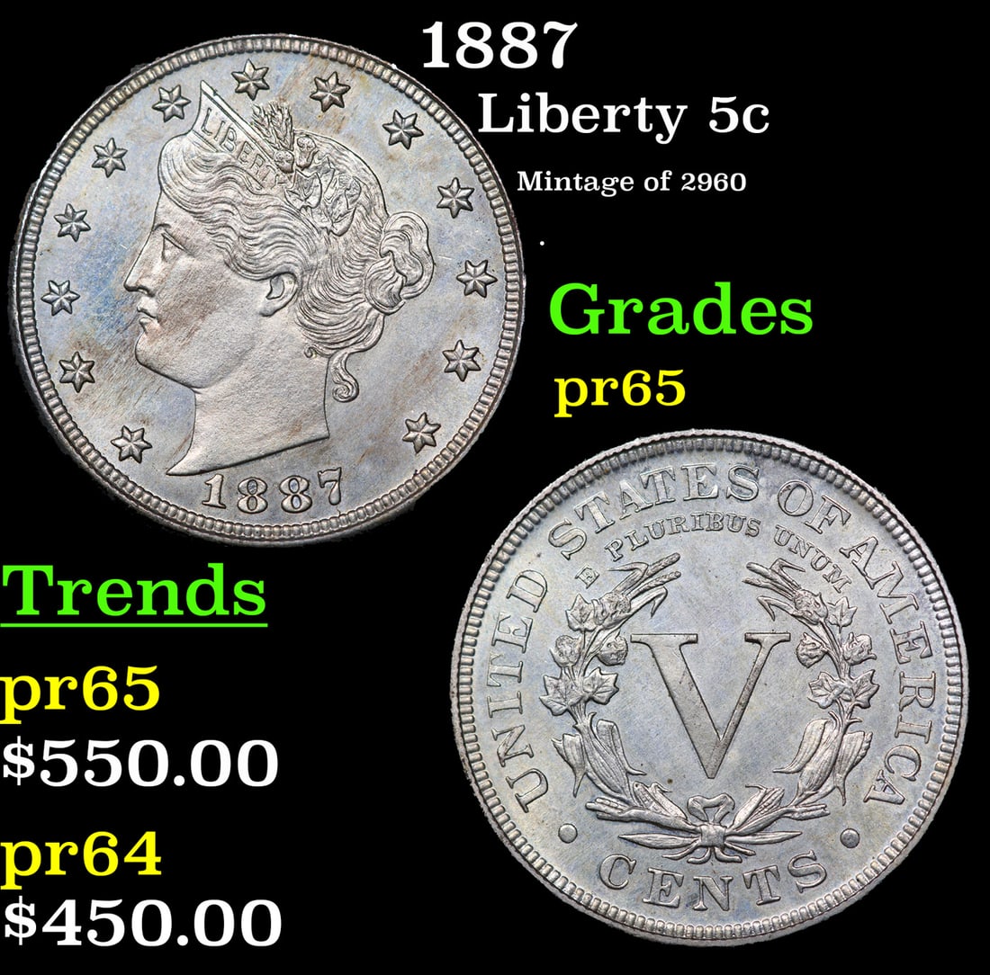 Proof 1887 Liberty Nickel 5c Grades GEM Proof