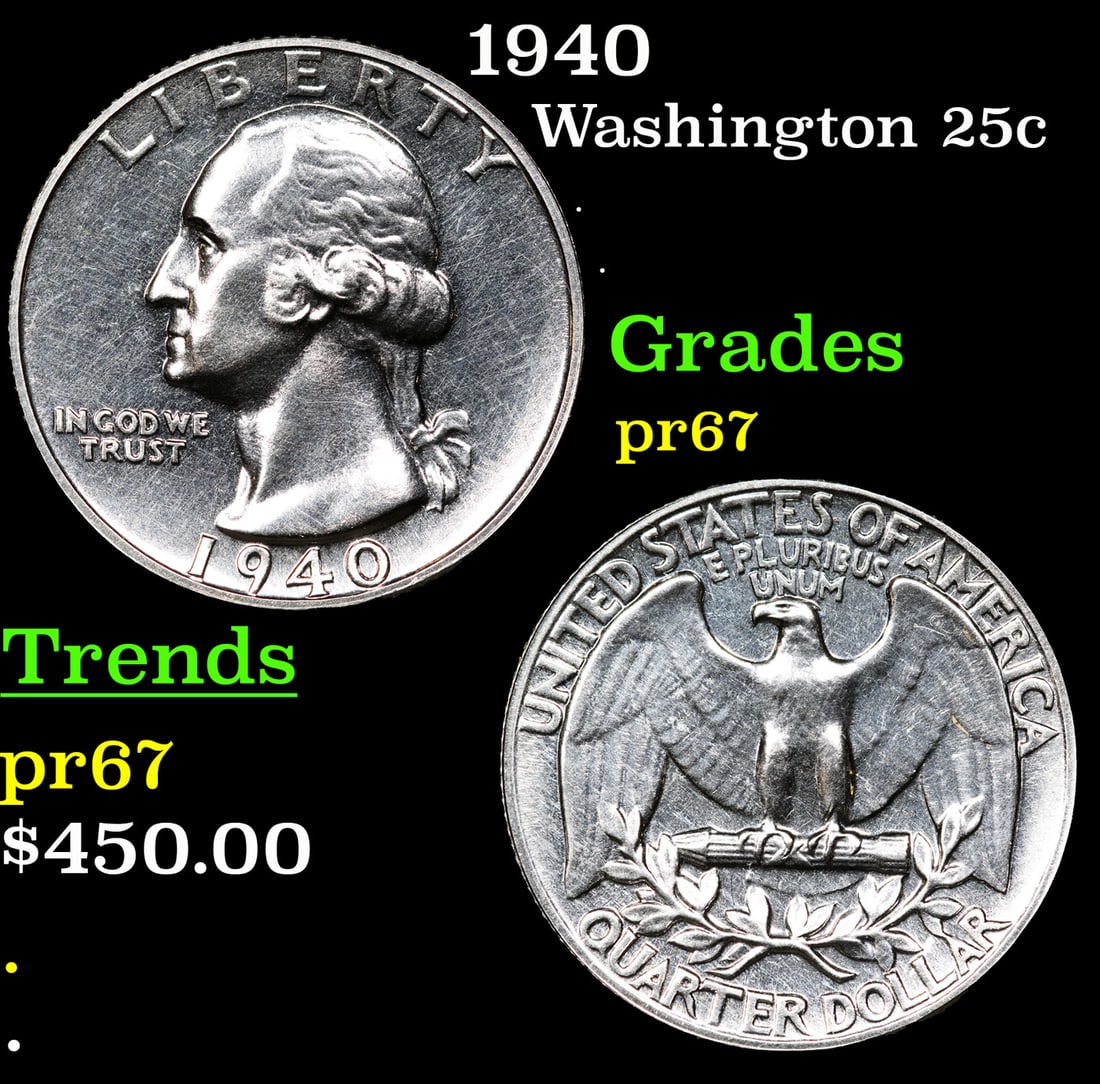 Proof 1940 Washington Quarter 25c Grades GEM++ Proof