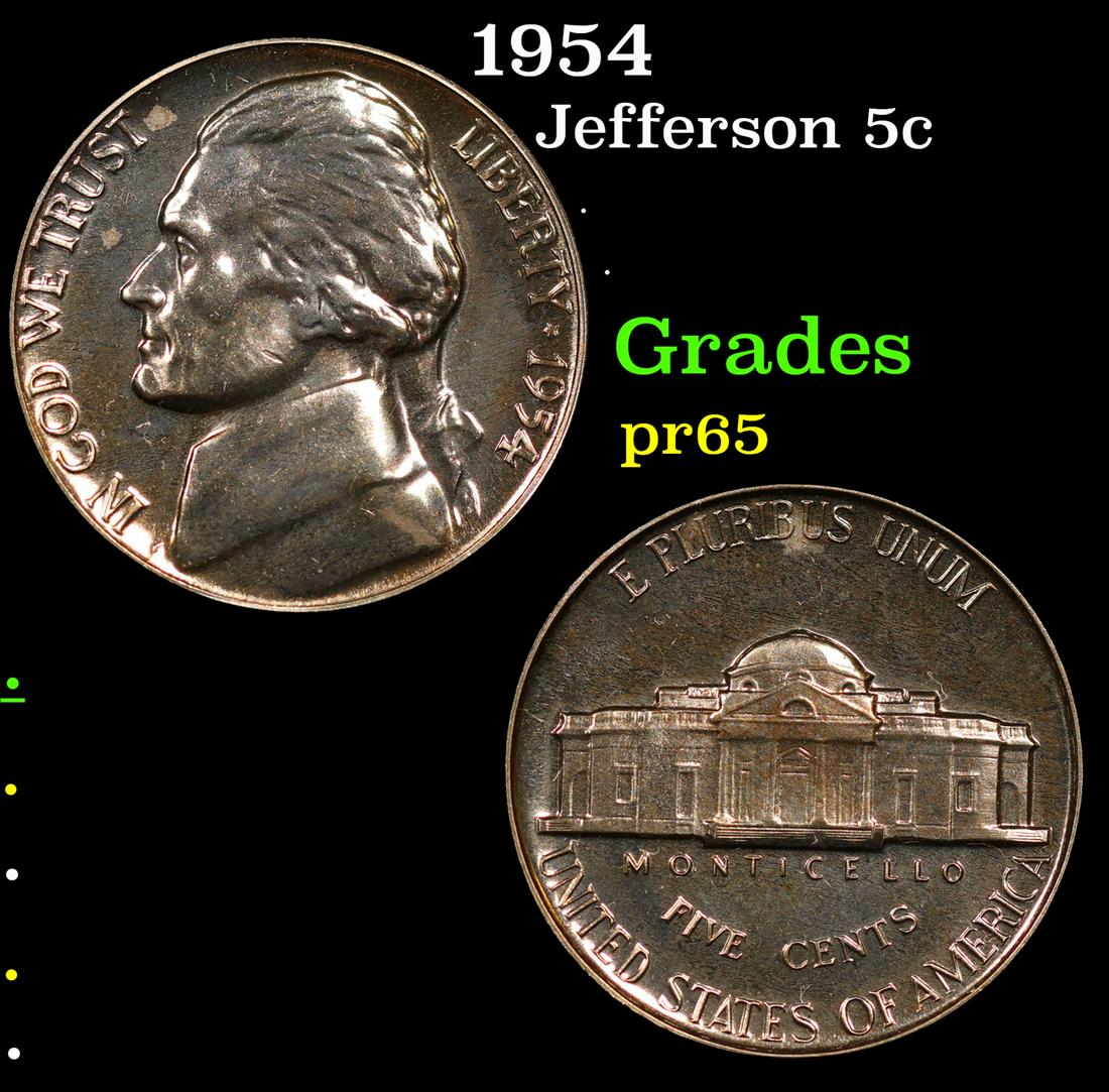 Proof 1954 Jefferson Nickel 5c Grades GEM Proof