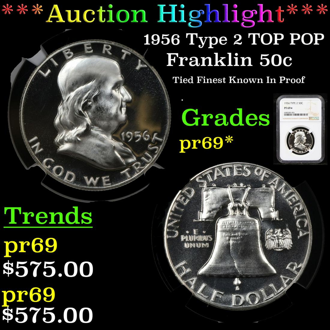 1956 Type 2 Proof Franklin Half Dollar TOP POP! 50c pr69 DCAM SEGSKey Date Coins4.3(1.7k)$5(1 bid)16 hrs Left