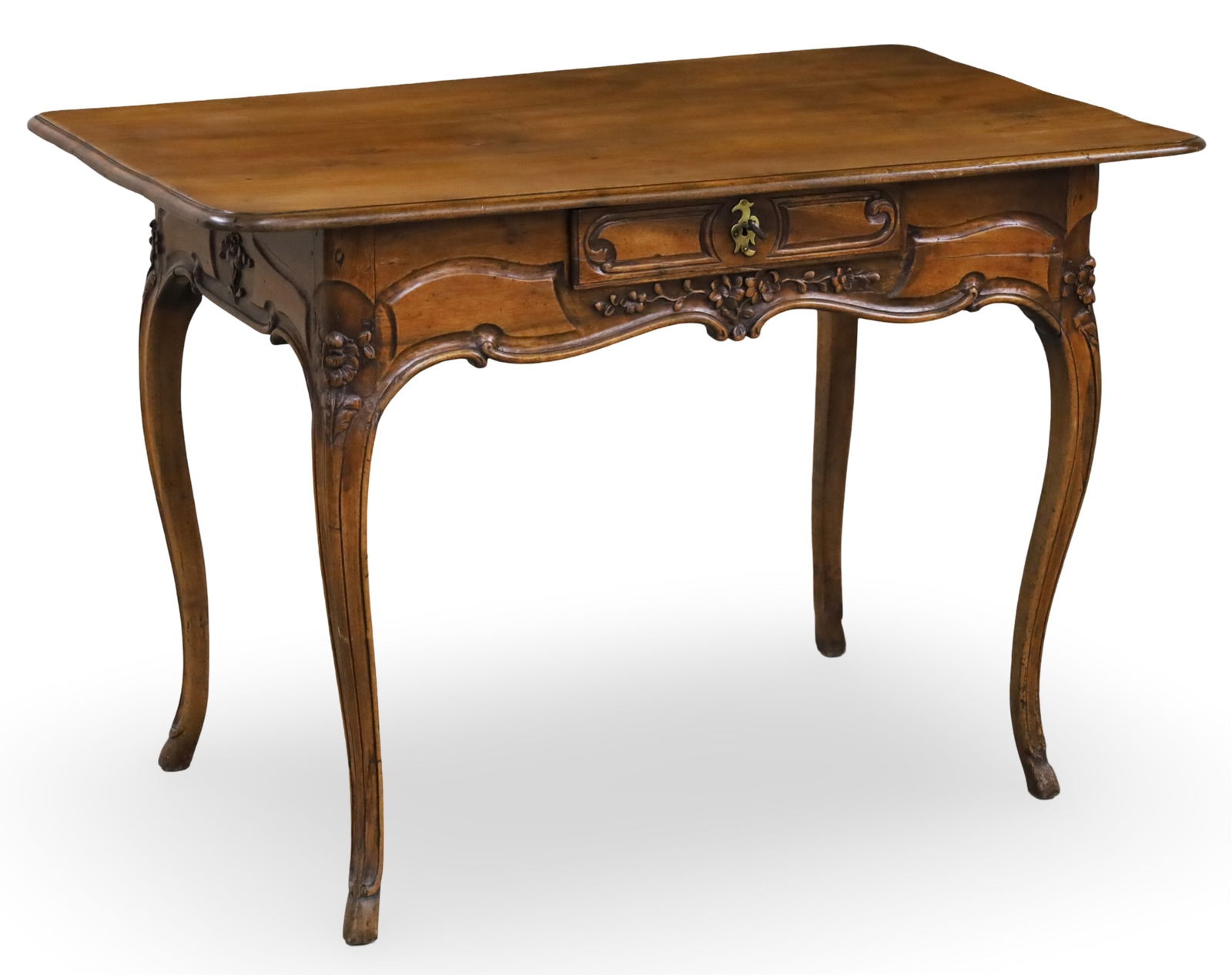 Louis XV Style Writing DeskFeb 26, 2026A Queen Anne Style Demilune ConsoleFeb 26, 2026Louis XV Style Walnut Entry / Writing Table5 days LeftFrench Turned Leg Walnut Writing Table5 days LeftFrench Provincial Style Carved Oak Writing Table24 hrs LeftFrench Louis XV Style Mahogany Writing Table, 20th c., H.- 29 1/4 in., W.- 41 1/4 in., D.- 19 3/4Feb 27, 2026A walnut and marquetry console table, 19th century, Italian,6 days LeftFrench Louis XV Walnut Writing Desk with Dovetailed Drawer814 Lots AwayFrench Provincial Walnut Writing Table, late 19th c., H.- 25 1/2 in., W.- 27 1/2 in., D.- 17 1/2 in.Feb 27, 2026SMALL FRENCH PROVINCIAL WALNUT ONE-DRAWER TABLE3 days LeftElegant French Carved Walnut Dining Table with 2 Leaves7 days LeftFrench console table with faux marble top.6 days LeftFrench Provincial Style Triangular Walnut TableMar 26, 2026WALNUT L/T WRITING TABLE, JONATHAN CHARLESMar 07, 2026ENGLISH MAHOGANY LIBRARY TABLEMar 07, 2026Walnut Victorian Square Center TableMar 07, 2026