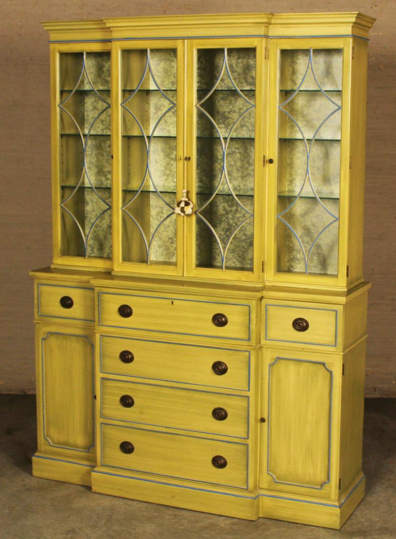 PROVINCIAL PAINTED BREAKFRONT SECRETAIRE BOOKCASE