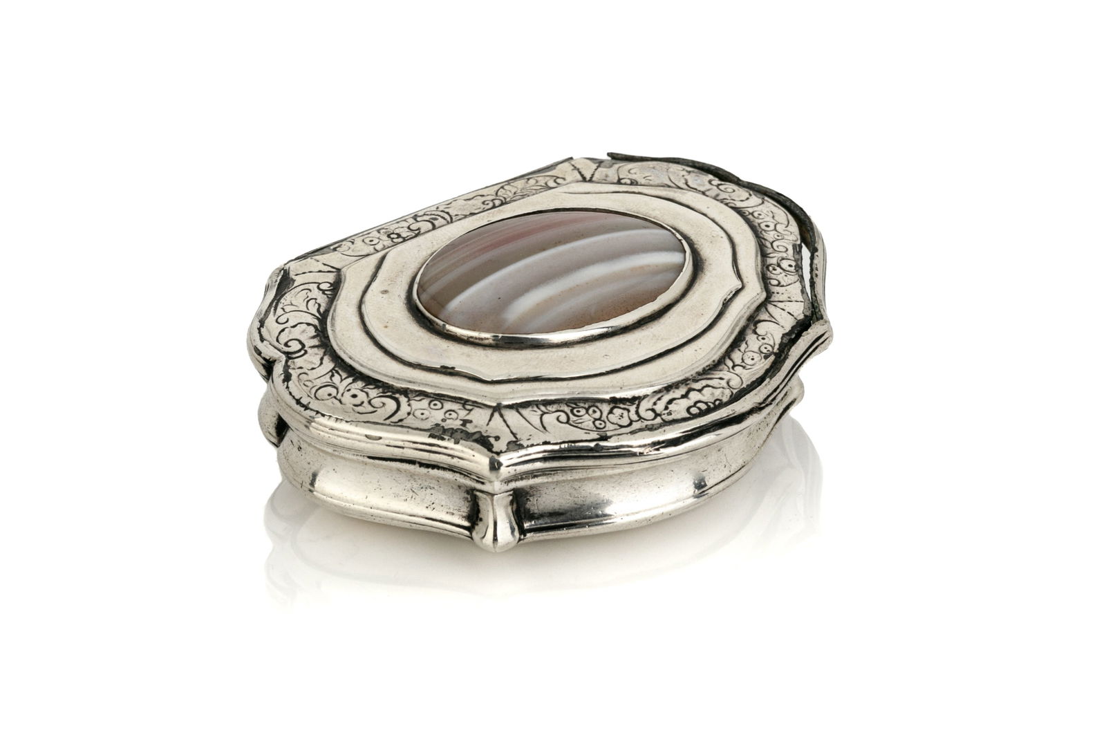PROVINCIAL SILVER SNUFF BOX WITH AGATE TOP, 47g