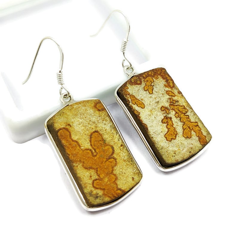 PSILOMELANE DENDRITE 92.5 STERLING SILVER EARRING