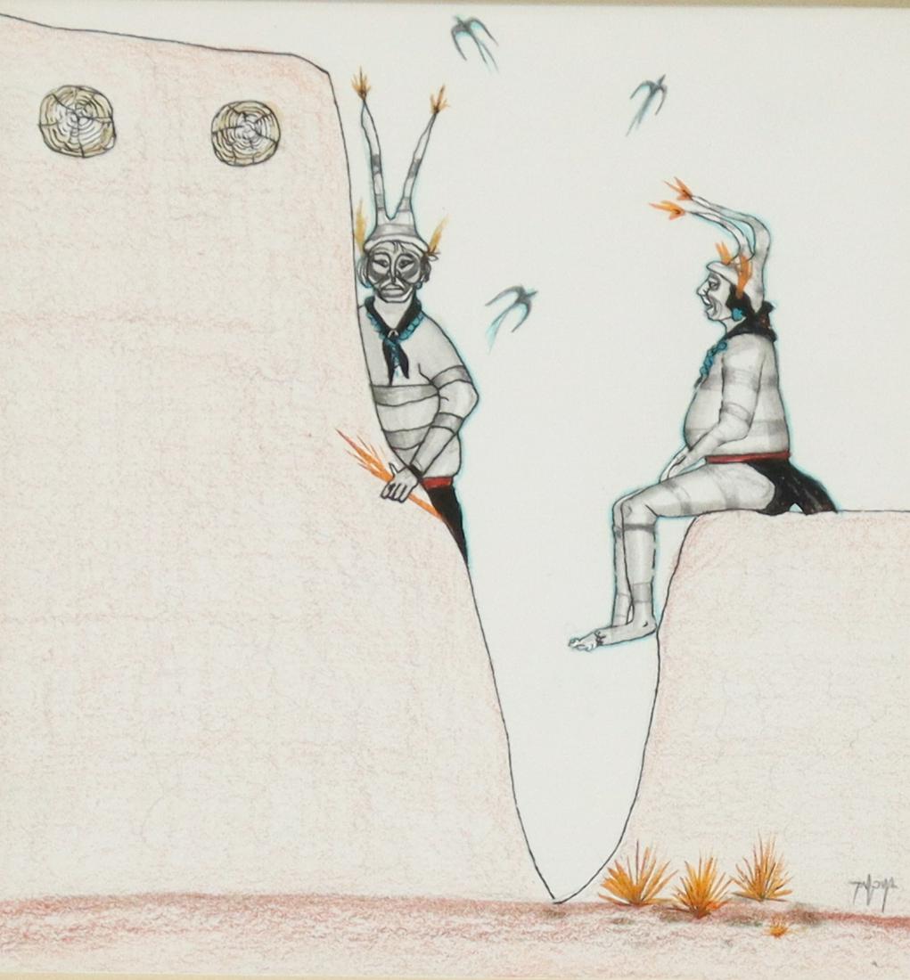 SIGNED TAFOYA HOPI PUEBLO CLOWNS DRAWING