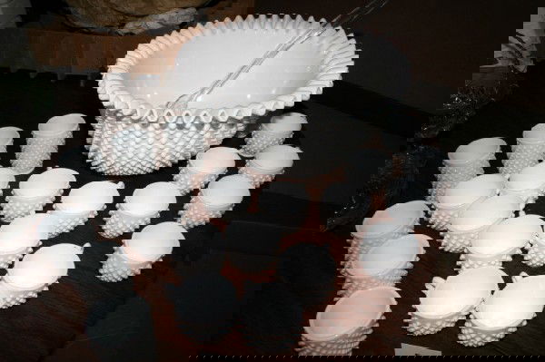 Lot Milk Glass ItemsMar 04, 202610 pc Lot Signed Hawkes Cut Glass Ice Cream BowlsMar 01, 2026Vintage 38-Piece Anchor Hocking Clear Glass Punch Bowl & Snack Plate Set44 Lots Away5pc Fenton Hobnail Milk Glass CollectionMar 02, 2026Vtg (1950s/70s) 4-Piece Imperial Milk Glass Dishes + Milk Glass Goblet89 Lots AwayAntique/Vintage MCM White Opaline/Milk Glass Pitcher, Compote, & Covered Dish91 Lots AwayVintage (1970s) 13-Piece Glass Punch Bowl Set w/Ladle & Cups32 Lots AwayAssorted Noritake & International Cups & Sauce Bowls4 days LeftLarge Victorian Cut Crystal Jug & Bowl SetVintage Etched Crystal Punch Bowl, Ladle & 12 GlassesVintage Glass Candy Dishes And Crystal Basket1 day LeftSet of (12) Pieces of Bone ChinaJul 17, 2025Antique Milk Glass Hobnail Punch Bowl Set with Saucers and Sherbet Glasses5 days LeftVintage Glass Punch Bowl Set for 12 20th CenturyMar 15, 20264pc Fenton hobnail milk glass candy dishes and compotesMar 09, 202616 Pcs Milk GlassMar 06, 2026