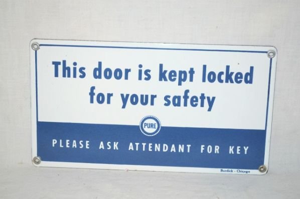 Lot of misc. signsMar 20, 2026(5) Men's Room & Locked Protection Signs LotMar 14, 2026ASSORTED GAS STATION RESTROOM SIGNS, LOT OF THREEMar 05, 2026(5) Porcelain Bathroom Informational SignsMar 14, 2026Sunoco Rest Rooms Colonial Lady & Man DSP Sign w BracketMar 21, 2026(2) Fire Alarm & Crown Panic Safety Door SignsMar 14, 2026Flats Fixed and New And Used Tires Vacuform Service Station SignsMar 20, 2026Please Drive To Last Pump Single-Sided Porcelain SignMar 14, 2026Sunoco Custom Clean Restrooms Double Sided Tin Key Fob Holder SignMar 21, 20261920-1930s "Do Not Spit In This Fountain" SSP SignMar 14, 2026No Parking Motor Banking Lane Sign, Green Lettering on White Background, 19h x 25w x 2d inchesSinclair Stop Your Motor No Smoking SSP SignMar 20, 2026Danger No Smoking Single-Sided Porcelain SignMar 14, 2026Texaco Restrooms Double Sided Key Fob SignMar 21, 2026"Contains Lead - Tetraethyl" Porcelain Gas Pump Sign8 hrs LeftBlackstone Cigar Single Sided Porcelain SignMar 21, 2026