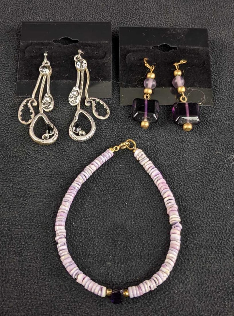 Lot 3 RMN Silver Tone Bracelet + Earrings5 days LeftSTERLING SILVER LADIES BRACELETS LOT OF SIXMar 07, 2026LADIES NECKLACES W/ COLORFUL BEADS LOT OF SIXMar 07, 2026LADIES JEWELRY LOT W/TOPAZ STONES ON BRACELET (5)Mar 07, 2026Earrings Silver Colored Pairs of Earrings1 day LeftLot of (5) Pairs of Sterling Silver EarringsMar 15, 2026Sterling Jewelry Assortment Bracelets and Necklaces, 126 gMar 15, 2026Purple and Sterling JewelryMar 08, 2026Four Pairs of Dangle Earrings1 day Left3 Vintage Purple Beaded Costume NecklacesJul 24, 2025Fun Earrings Fashion Earrings Pink, Blue Chico'sMar 17, 2026Purple and Gold Tone Costume JewelryMar 08, 20265 Sterling Bracelets & Matching Earrings4 days LeftMatching 925 Amethyst Ring & Earrings4 days LeftSterling Silver and Amethyst Bracelet and Earrings by VJ 1950, 33 g 3 PCSMar 19, 2026MOSTLY ARTISAN MADE JEWELRY AMETHYST STONE CHOKER, BRACELET, EARRINGS