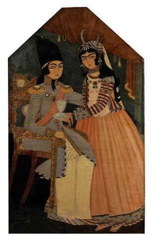 Qadjar School, Young couple, Canvas
