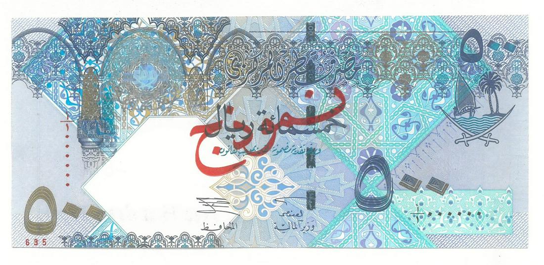 Qatar 2003 Five Hubdred Qatari Riyals Specimen