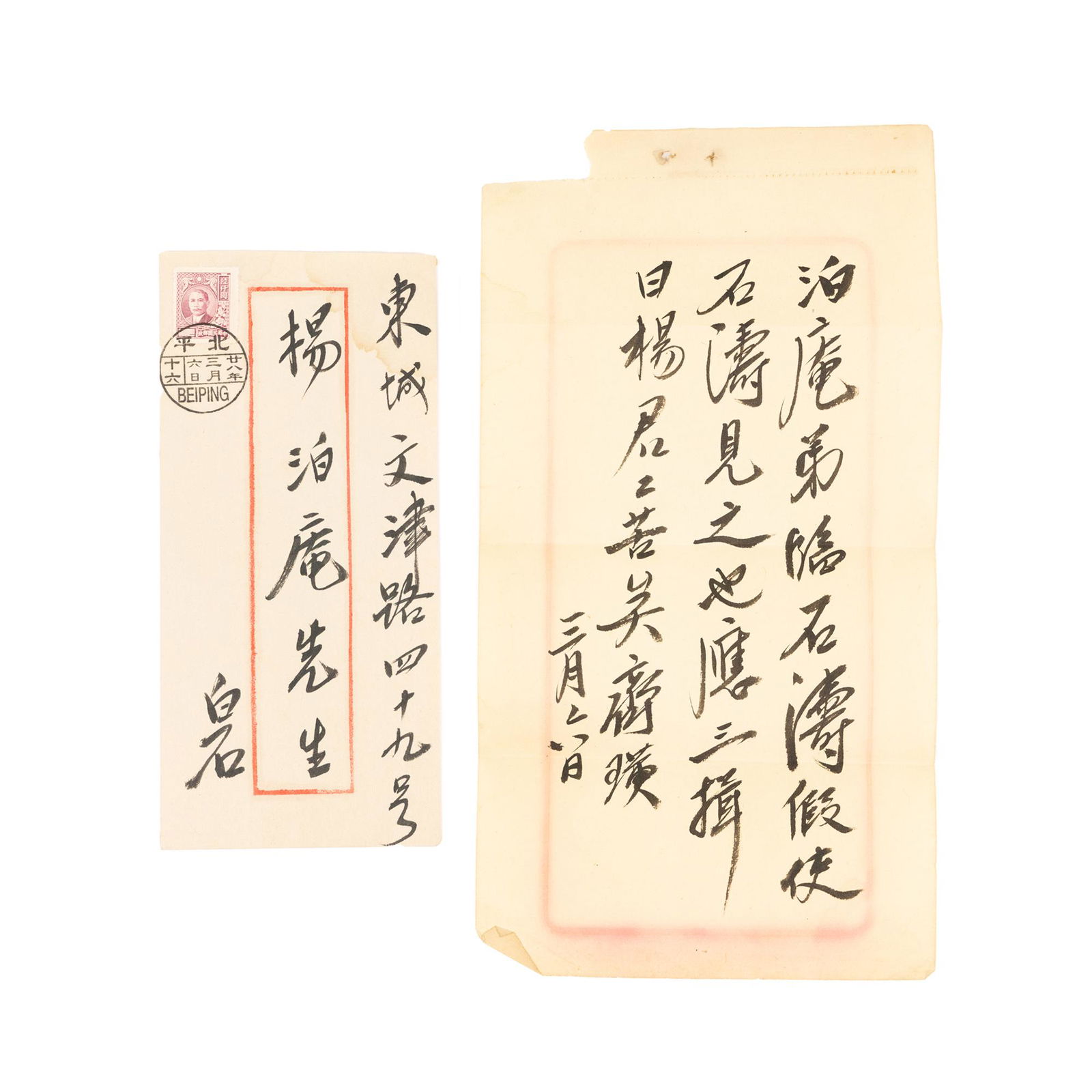 Qi Baishi Calligraphy and Signed Envelope