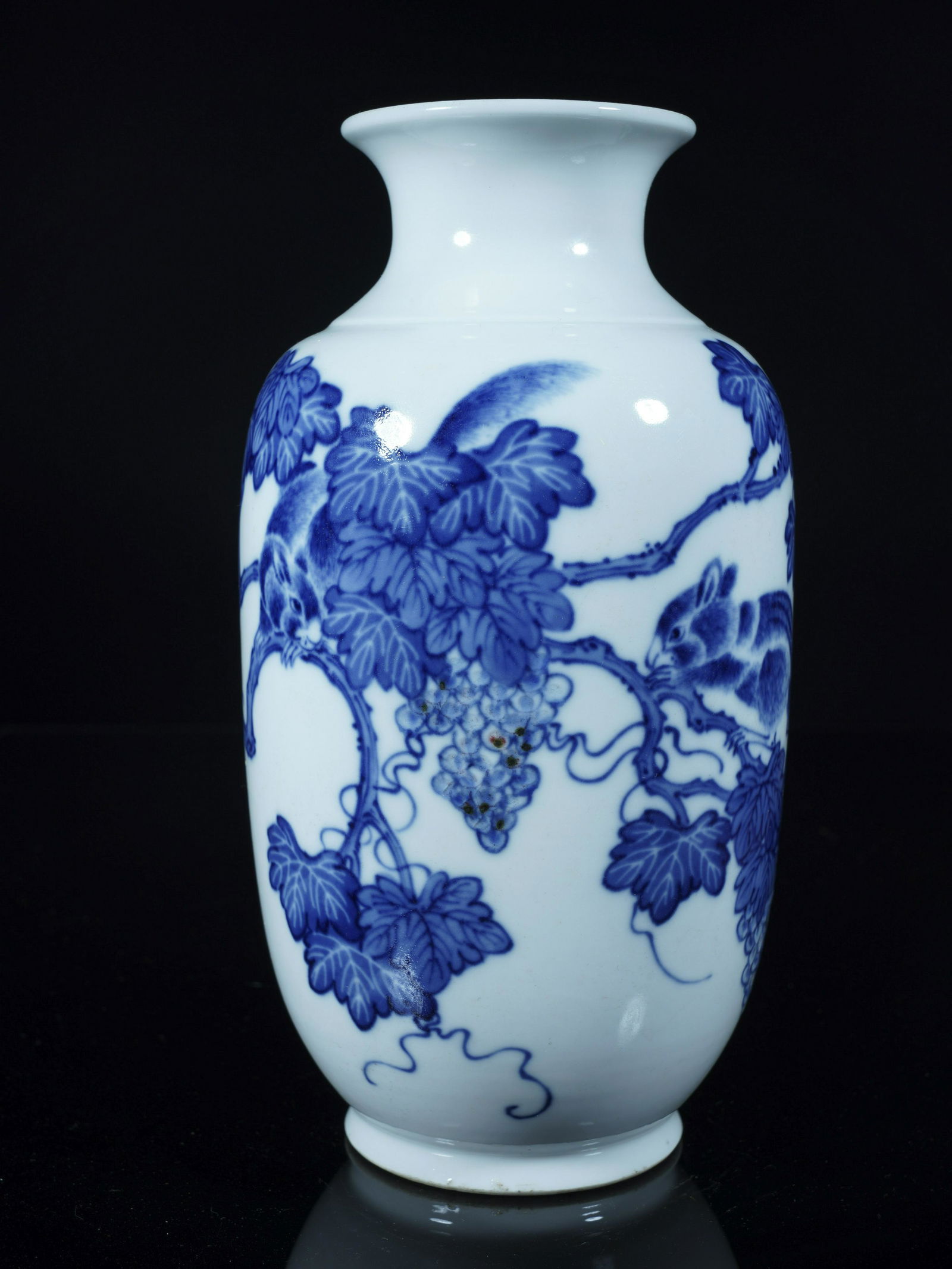 QIANLONG BLUE AND WHITE GRAPE PATTERN VASE