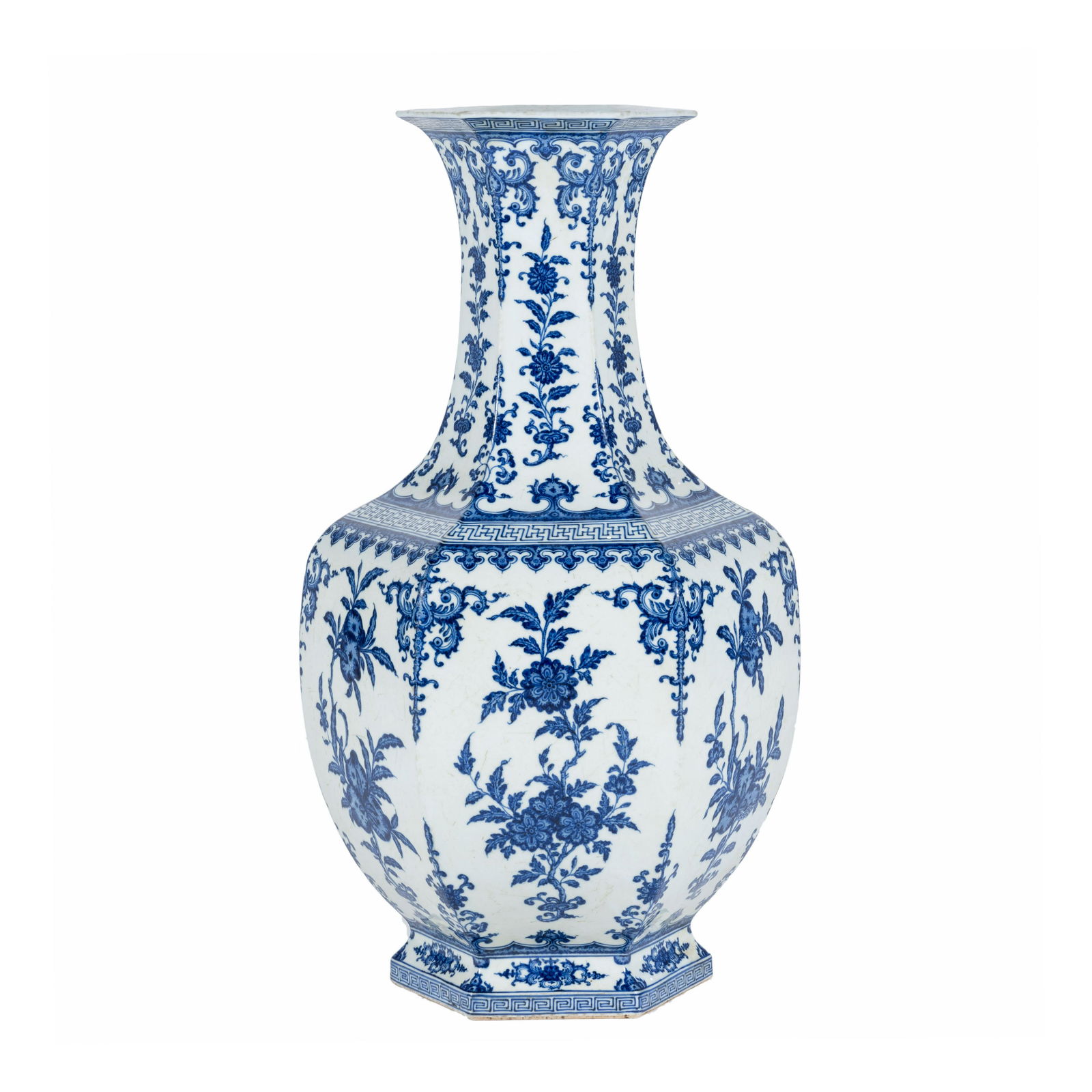 QIANLONG BLUE &WHITE HEXAGONAL VASE