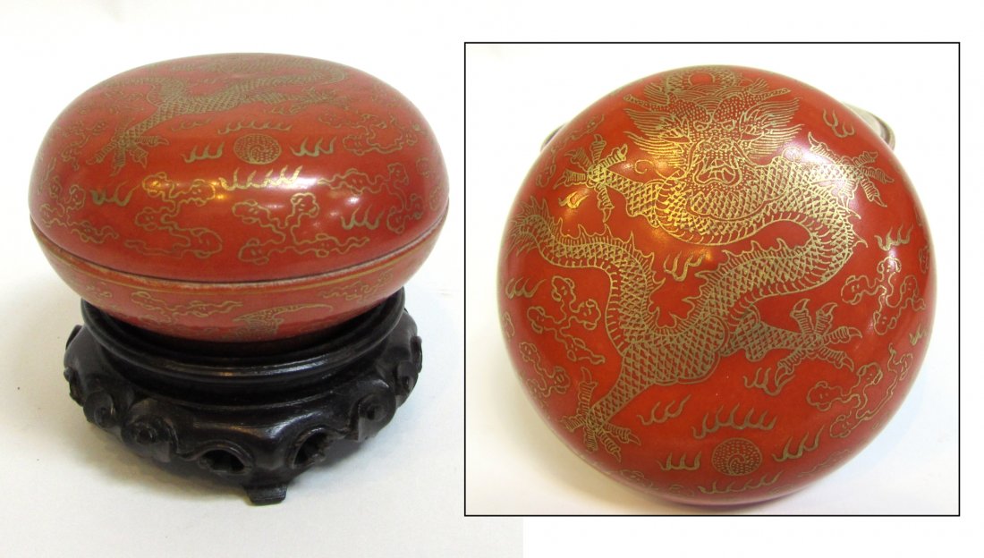 Old Chinese Red Lacquerware Pot w Qianlong MarkA Peachbloom Red Glazed Ink Paste Box and CoverFeb 22, 2026An Exquisite Ink Color Ruby Red-Glazed Painted Gold Seawater Pattern Dragon Pattern Double-EarsVaseMar 04, 2026A piece of Daoguang seventh year of the Ministry of Internal Affairs Supervised by Tian HuangshiMar 14, 2026A Qing Qianlong enamel colored sand red gold-painted Western printing boxMar 07, 2026A pair of Exquisite Iron-Red Painted Gold Dragon Pattern OrnamentFeb 26, 2026Lacquerware Gold Drawing Dragon and Bat & Shou Pattern Lid BoxFeb 26, 2026A Pair of Chinese Celadon Porcelain Incense Burners with Gilded Shishi Motifs & 6 Character Marks to3 days LeftCloisonné Tea Caddy & Cinnabar Carved EggMar 05, 2026An Exquisite Iron-Red Ink Color Painted Gold Landscape Pattern Jar with Cover,with poemFeb 27, 2026An Exquisite Guan yao Cover with Gold Figure Pattern Loop-Handled Pot,with poemMar 11, 2026A CARVED CINNABAR LACQUER DRAGON BOX WITH COVERMar 01, 2026An Exquisite Ink Color Iron-Red Painted Gold Seawater Pattern Dragon Pattern VaseFeb 24, 2026A piece of Jiaqing sixth year of the Ministry of Internal Affairs Supervised by Tian Huang ShilongFeb 28, 2026Old Rosewood Tea CanisterFeb 27, 2026An Exquisite Carved Red Lacquer Auspicious Cloud and Bats Pattern Box,With PoemFeb 28, 2026