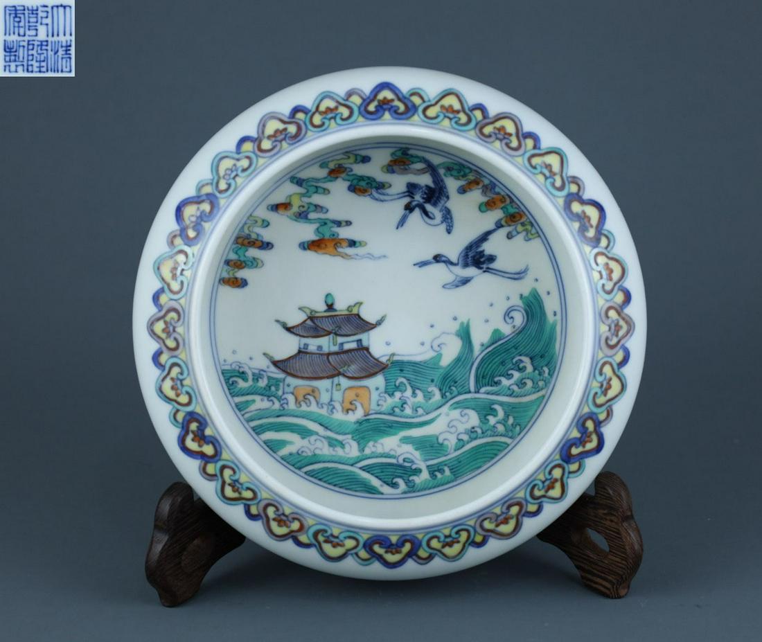QIANLONG MARK DOUCAI GLAZE LANDSCAPE BRUSH WASHER