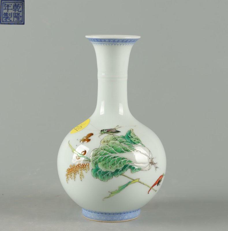 QIANLONG MARK ENAMELED GLAZE INSECT CABBAGE VASE