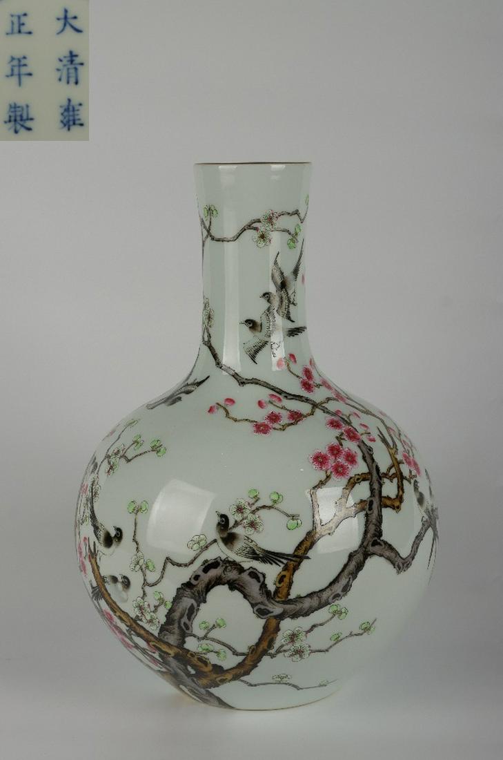 QIANLONG MARK FAMILLE ROSE GLAZE FLOWER&BIRD VASE