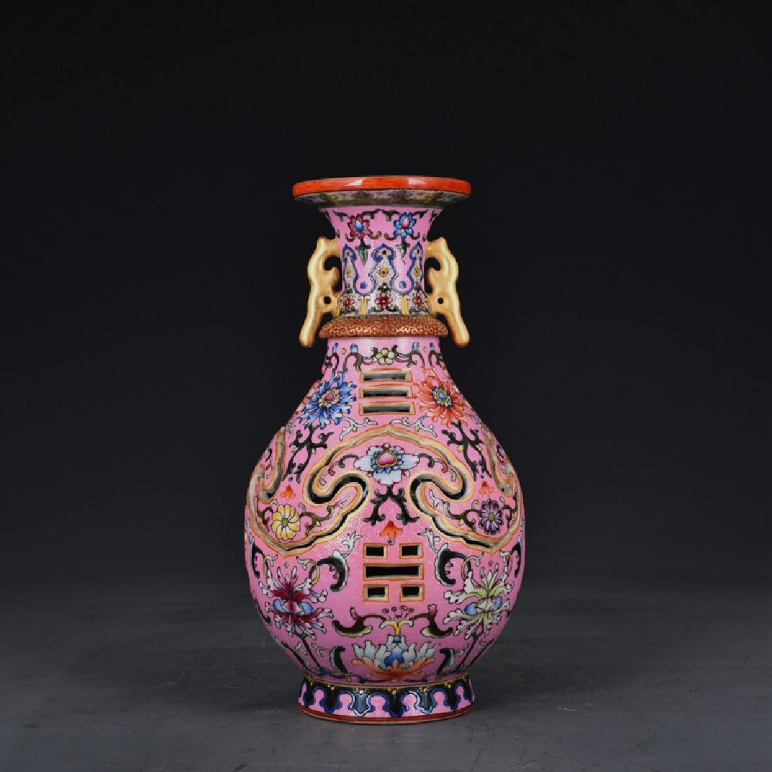 Qianlong Mark Pink Vase
