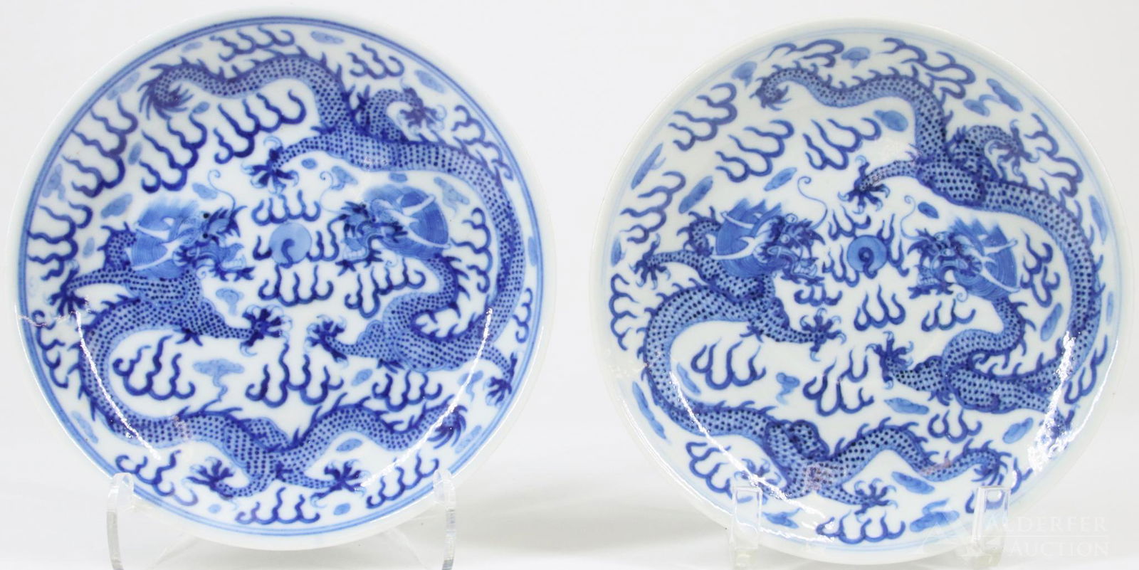 A pair of Ming Dynasty Xuande blue and white porcelain plates with lotus scrolls and five dragons.CJ Auction$60011 hrs Left