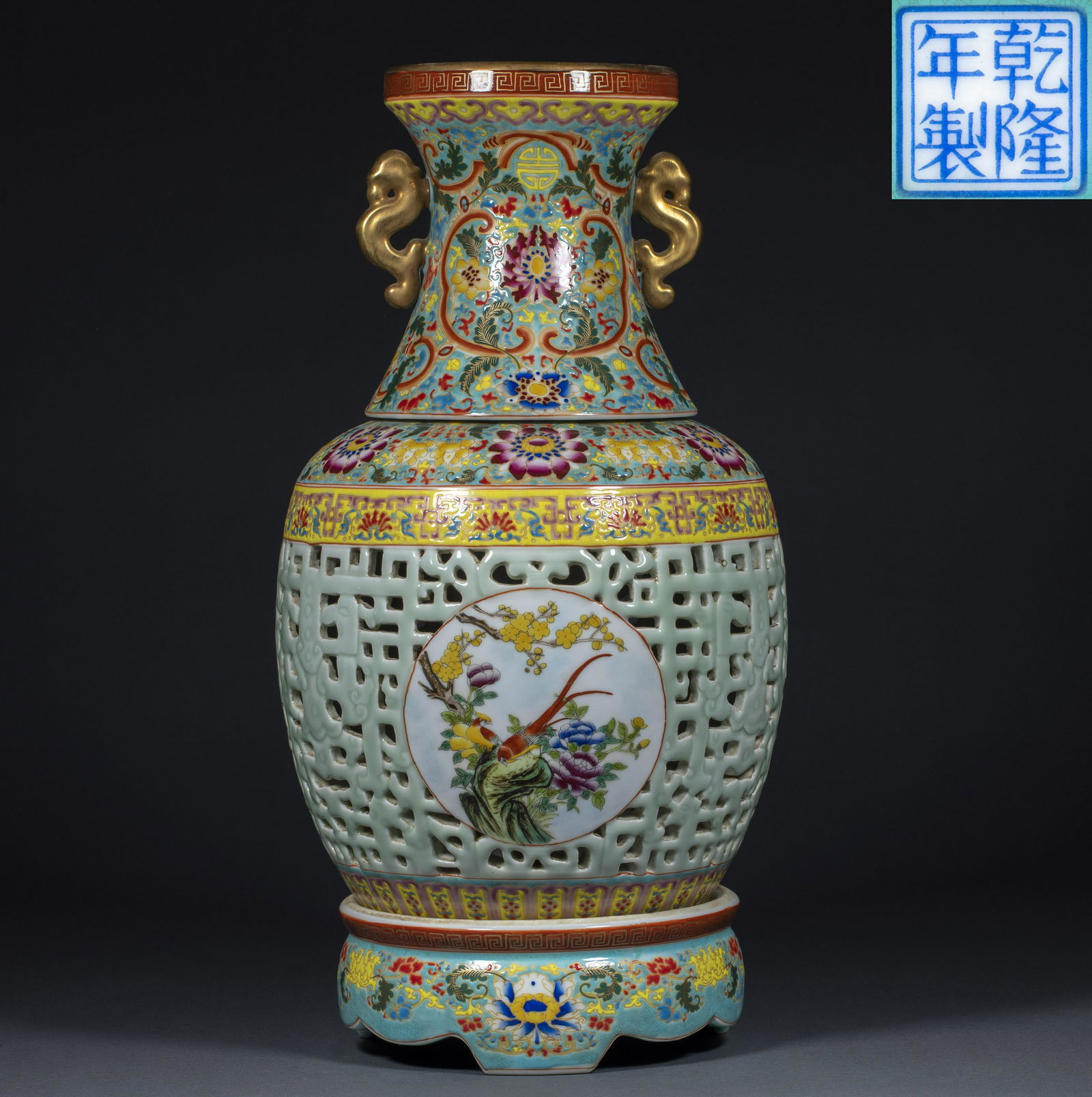 Qianlongpinkcolorhollowedoutwindowvasewith