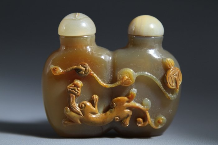 Qing Aget Double Bodied Snuff Bottle With Dragon Design