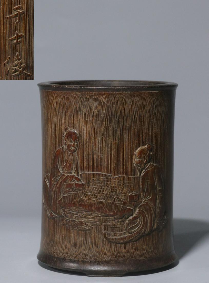 Qing Dyansty - Bamboo Carved Character Pattern Brush Pot
