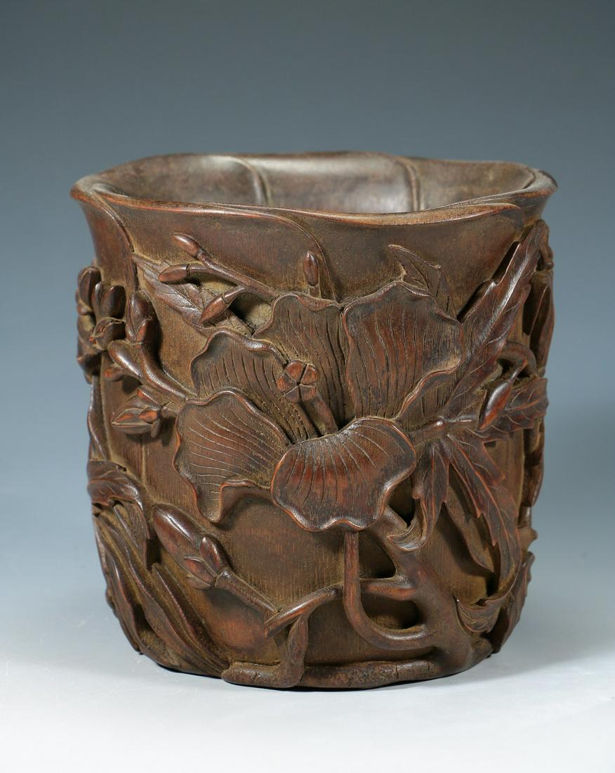 Qing Dyansty - Bamboo Carving Flower Pattern Brush Pot