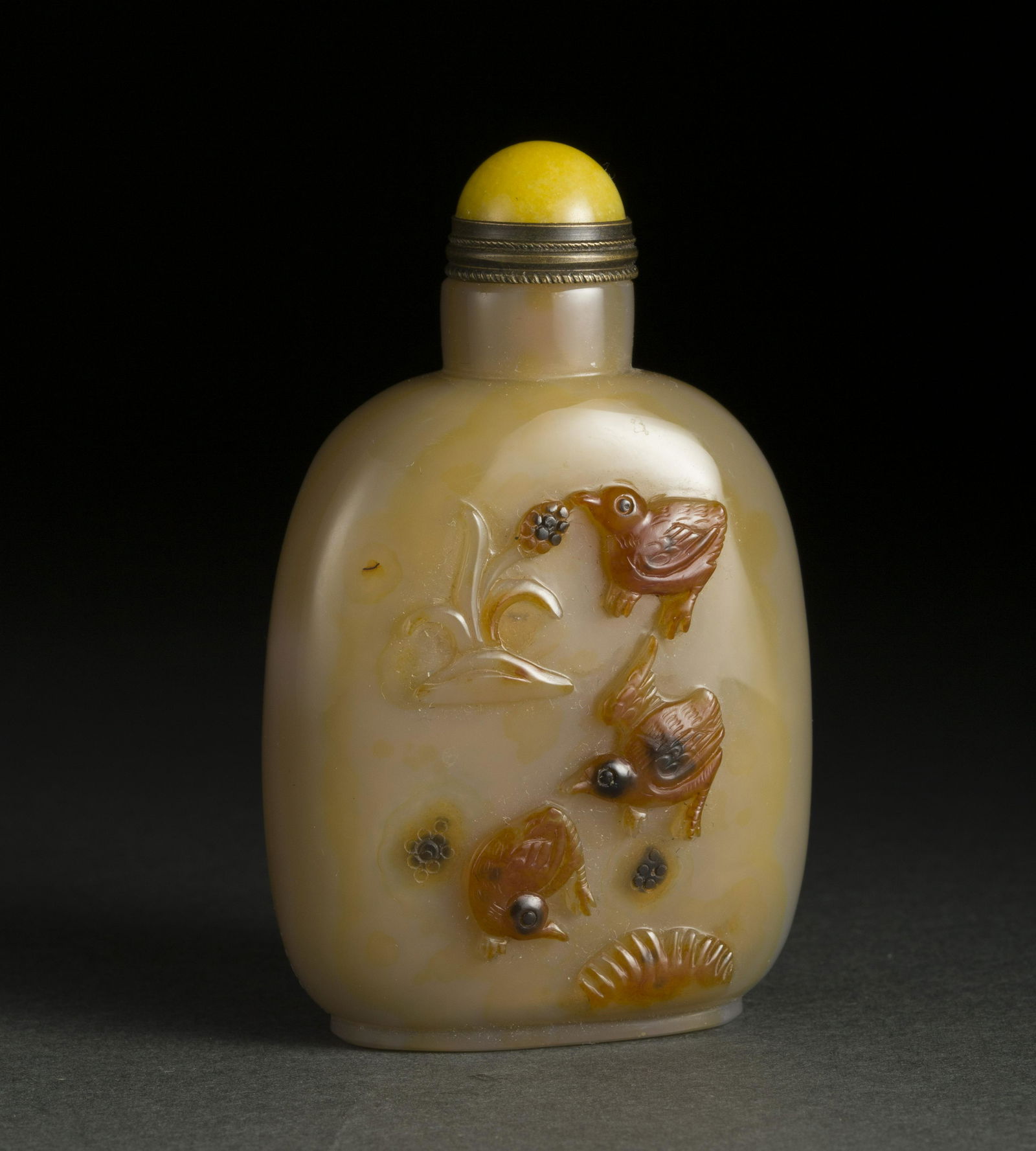 Qing Dynasty agate flower and bird pattern snuff bottle