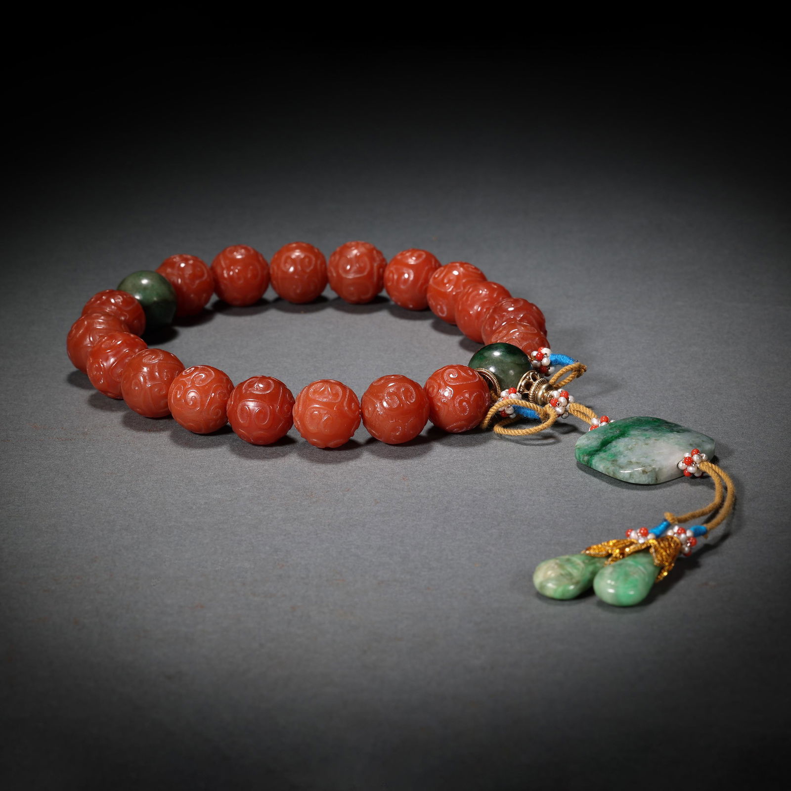 A string of agate thread beads from the Qing Dynasty