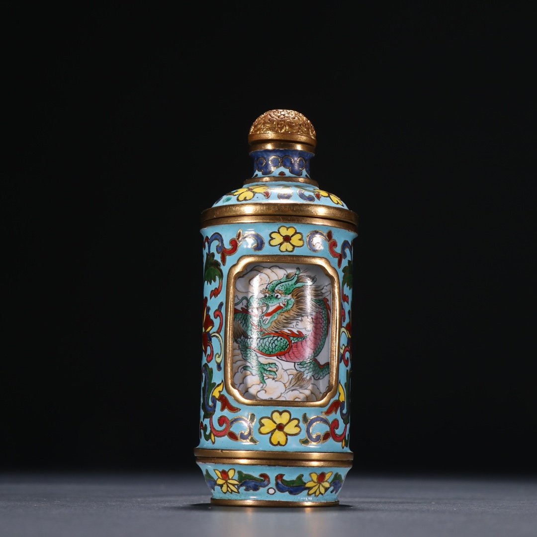 Qing dynasty cloisonné snuff bottle with dragon pattern inside