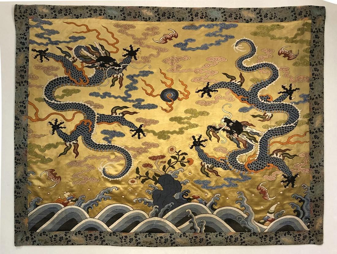 AN IMPERIAL 'TWO DRAGONS' SILK BROCADE FRAGMENT, MING DYNASTYMar 12, 2026A dragon pattern brocade of the Qing DynastyMar 14, 2026Dragon BrocadeMar 05, 2026Seed embroidery with auspicious clouds and dragon patterns in bright yellow groundMar 15, 2026A Rare Dragon and Eight Treasures Pattern BrocadeMar 15, 2026An Exquisite Kesi Dragon Pattern OrnamentMar 06, 2026Li Long Bei Dragon Cover, Hainan Island, South China, Qing Period7 days LeftA Chinese Imperial-Style Silk Dragon Panel, Five-Clawed Dragon Amid Clouds4 days LeftCHINESE SILK EMBROIDERED DRAGON PANEL, LATE 19TH CENTURY4 days LeftLi Long Bei Dragon Cover, Hainan Island, South China, Qing Period7 days LeftAn Exquisite Cloisonne Auspicious Cloud and Dragon Pattern BoxMar 07, 2026CHINESE KESI SILK PANEL WITH DRAGON AND BUDDHIST EIGHT TREASURES, 19TH CENTURY4 days LeftA CHINESE KESI EMBROIDERED DRAGON HANGING PANELMar 01, 2026An Exquisite Brocade Painted Color Vajra TangkaMar 04, 2026An Exquisite Embroidery Dragon Pattern Civil Official Rank BadgesFeb 27, 2026Exquisite Su Embroidery of Bogu Pattern with Sacrificial Objects, Lake Stones and Flowers, Mid-Qing7 days Left