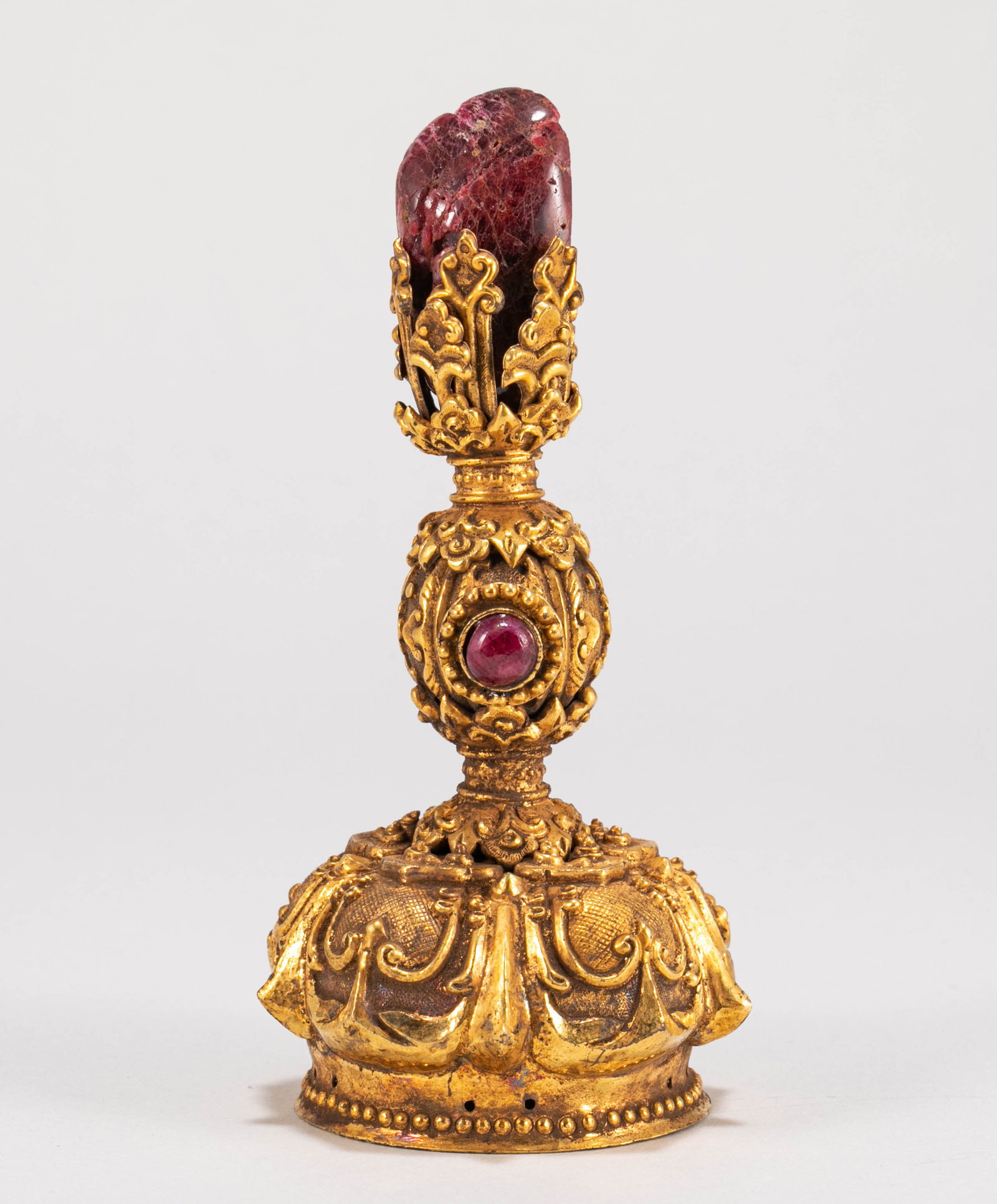 A Qing Dynasty ruby inlaid silver gilt hat top