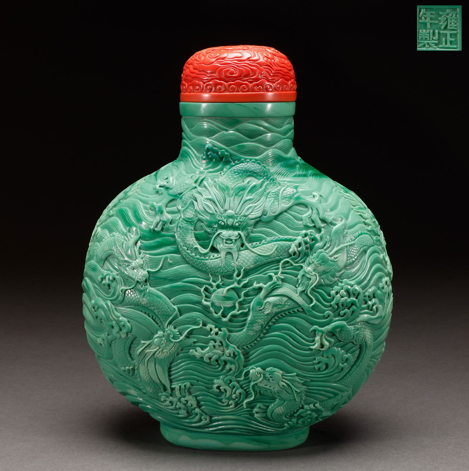 Qing Dynasty glazed dragon patterned oversized snuff bottle