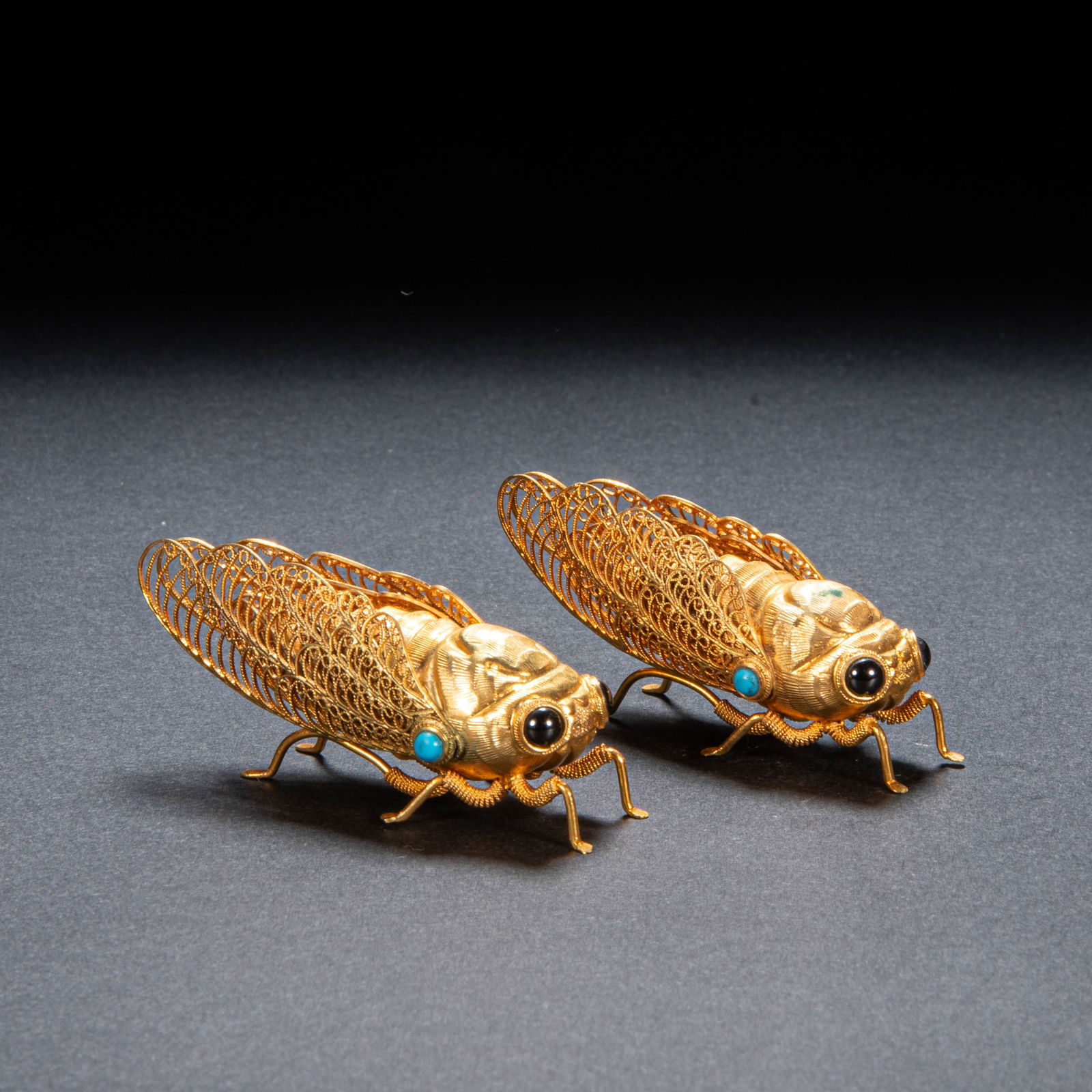 Qing Dynasty golden grasshopper pair