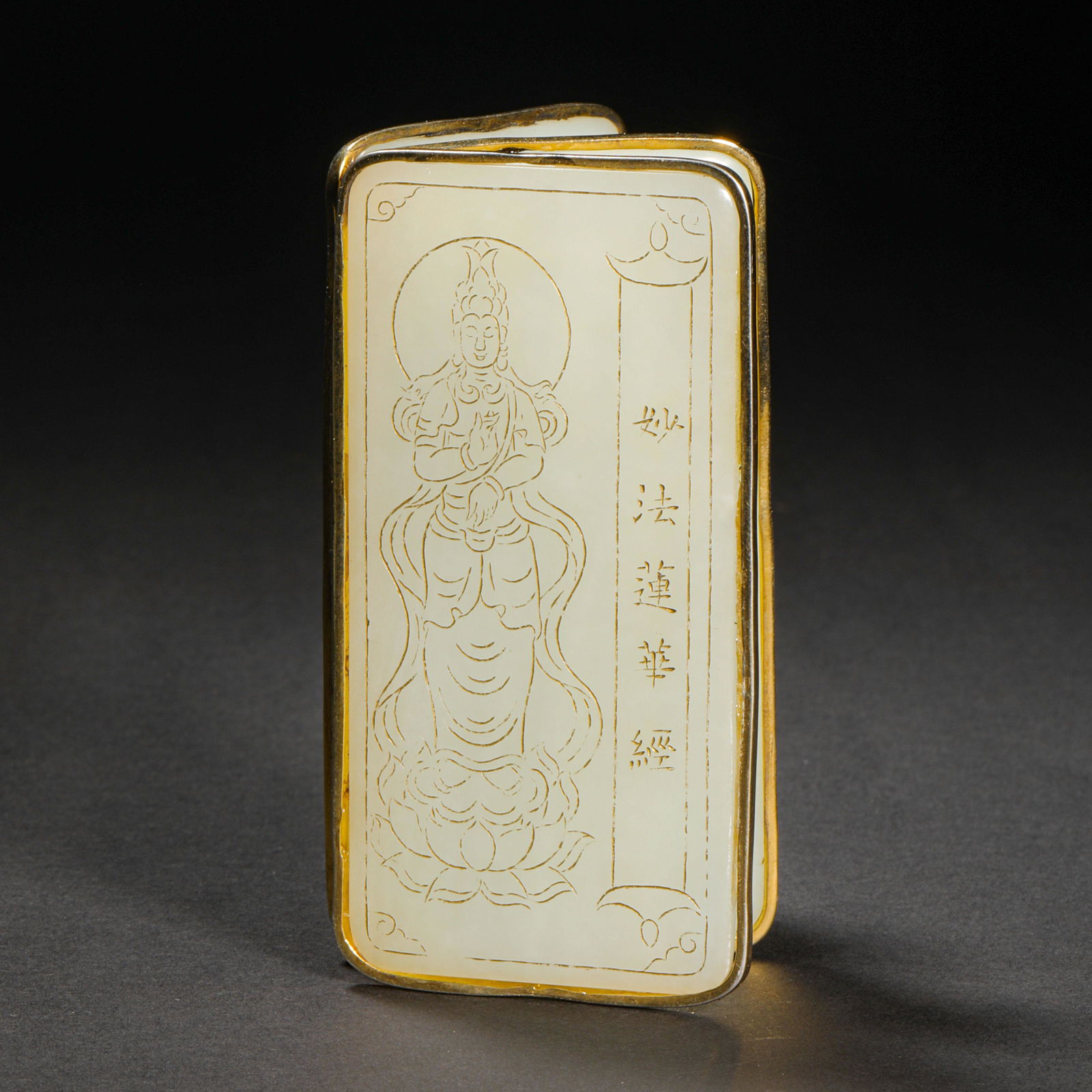 MID-QING DYNASTY, WHITE HETIAN JADE BOOKLET WITH GILT MOUNTS, ENGRAVED WITH THE DIAMOND SUTRAHotspot Auctions4.3(19)$5006 days Left