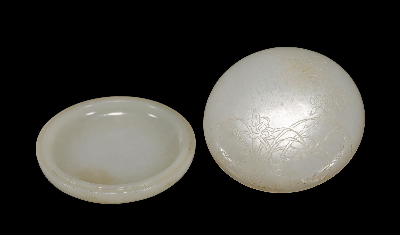 Qing Dynasty - Hetian Jade Orchids Pattern Powder Box