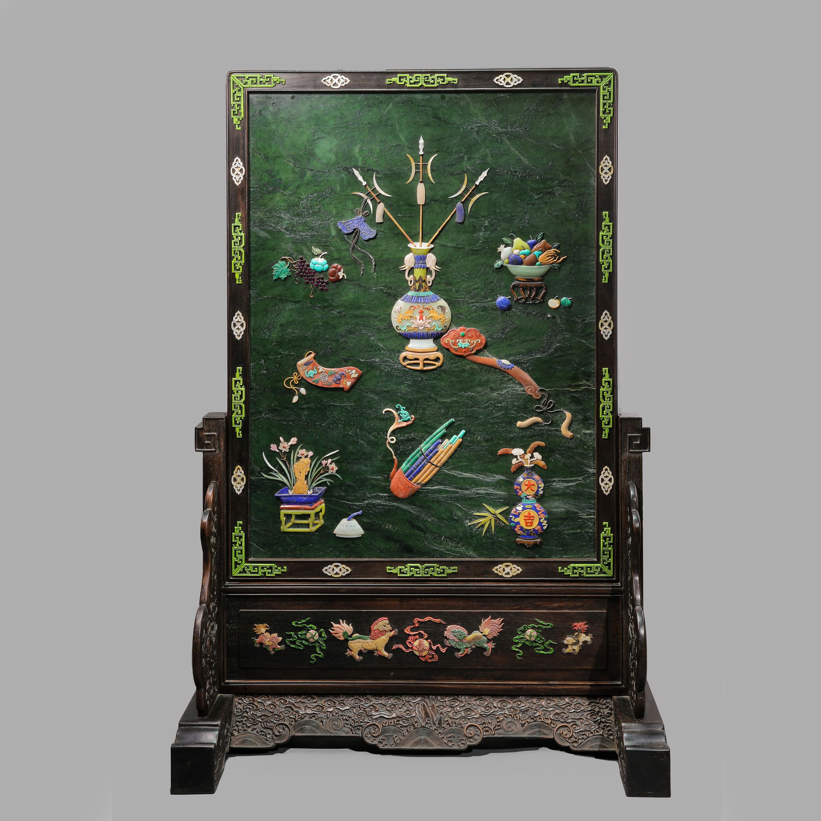 Qing dynasty Hotan jasper embedded multi-treasure screen