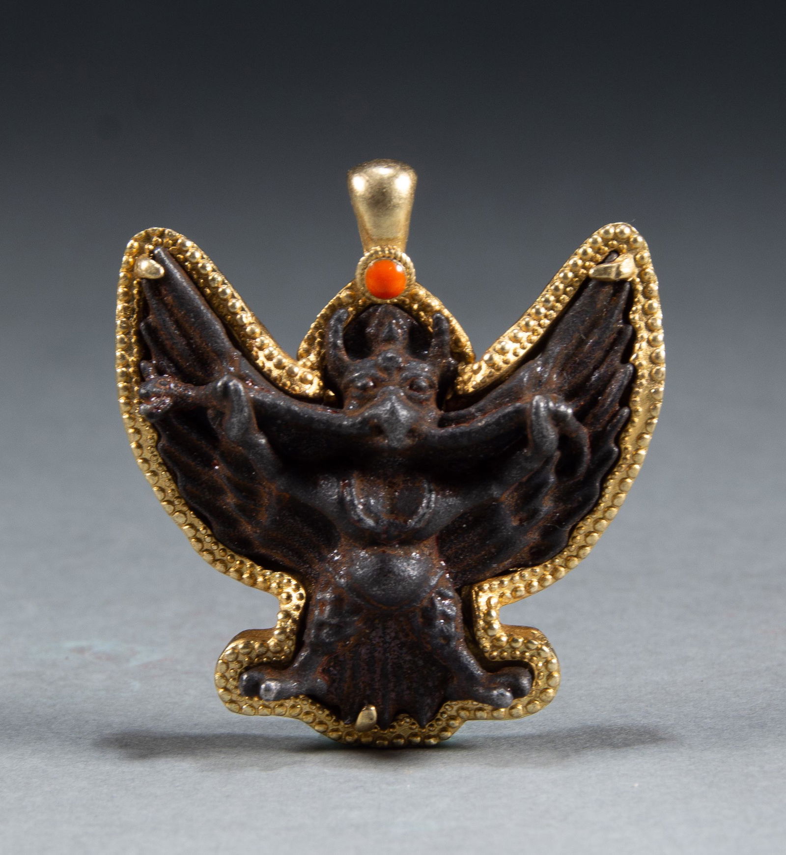 Qing Dynasty silver gilded ruby inlaid pendant