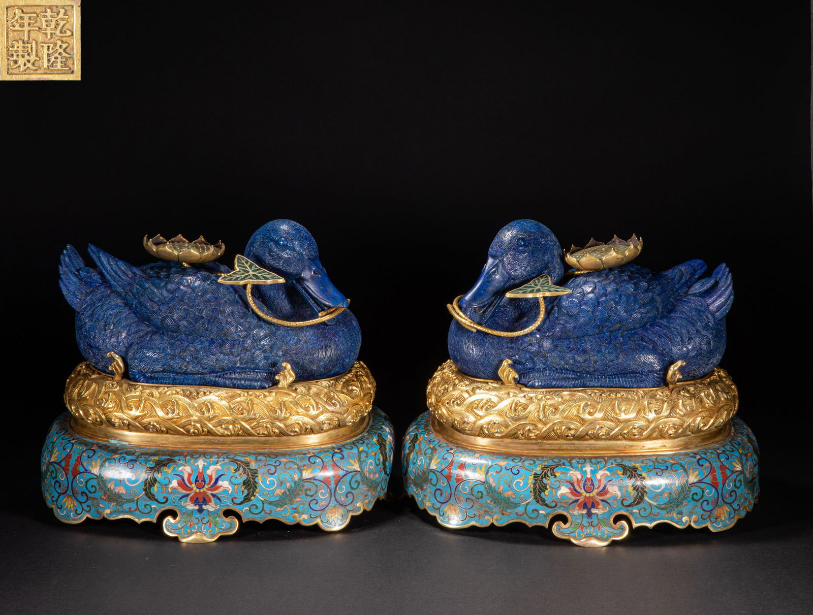 lot of 2 Chinese ceramic goose figurines4 days LeftA pair of Qing Dynasty fine lapis lazuli duck ornaments2 days LeftA Pair of Fine Cloisonne Duck OrnamentsMar 21, 2026A pair of Qing Dynasty lapis lazuli high footed furnacesMar 08, 2026A Pair of Exquisite Cloisonne Bird OrnamentMar 06, 2026A Pair of Rare Cloisonne Flower Pattern Duck CenserMar 07, 2026A pair of lapis lazuli cloisonné Taiping elephant ornaments from the Qing DynastyMar 07, 2026A Pair of Huge Cloisonne Lotus Pattern Duck OrnamentMar 07, 2026Pair Of Chinese Cloisonne Goose Form Boxes2 days LeftA Fine Pair Of Cloisonne DucksMar 11, 2026A Pair of Agate Mandarin Ducks6 days LeftA pair of cloisonné ducksMar 07, 2026A Pair of Exquisite Cloisonne Sika Deer OrnamentMar 06, 2026A Exquisite Cloisonne Duck Ornament13 hrs LeftAn Exquisite Cloisonne Goose OrnamentMar 06, 2026Qing Dynasty Lapis Lazuli Inlaid Ruyi2 days Left