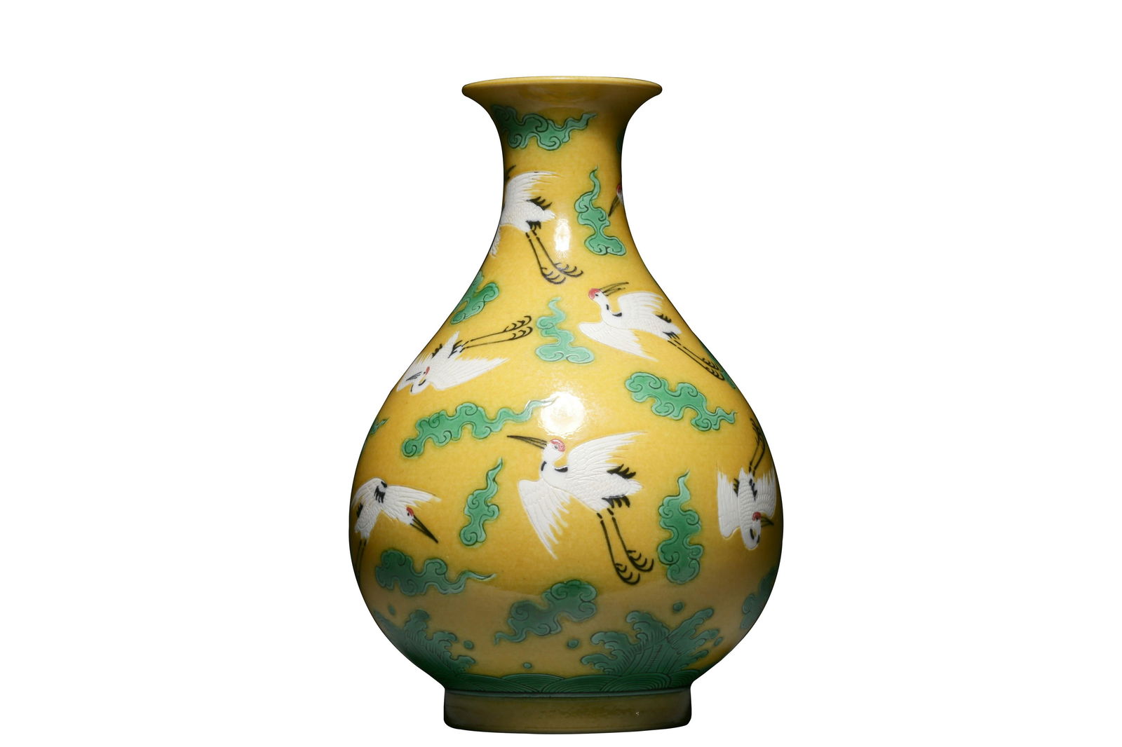 Qing Dynasty, plain three-color cloud and crane pattern jade pot spring vase