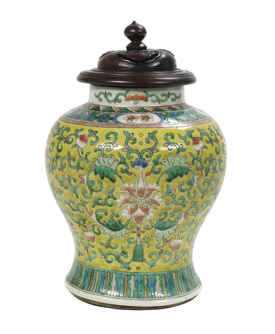 A Ming Dynasty, Jiajing period red and green enamel jar depicting lotus, pine, bamboo, plumCJ Auction$60014 hrs Left