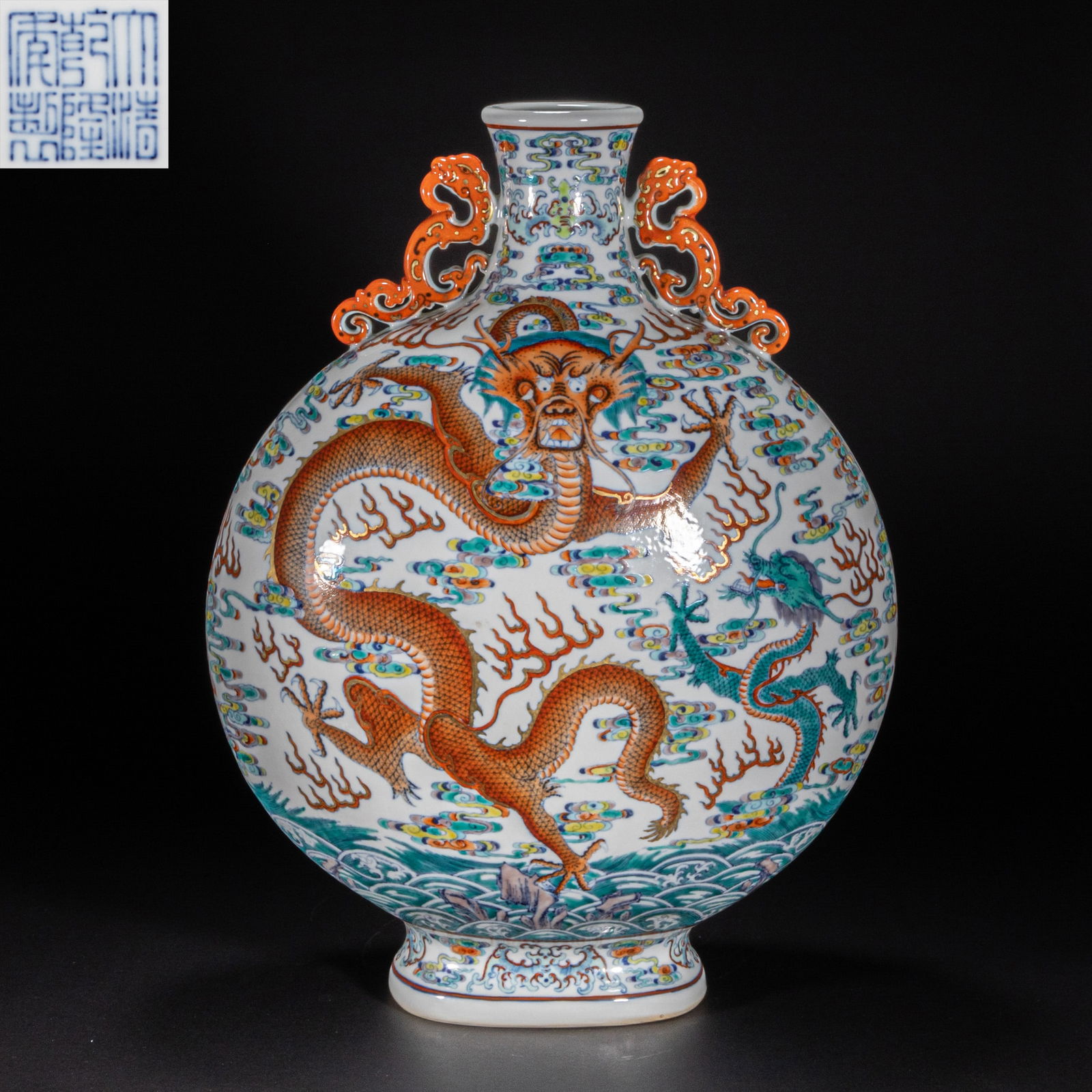 Qing Dynasty powder enamel dragon pattern flat bottle